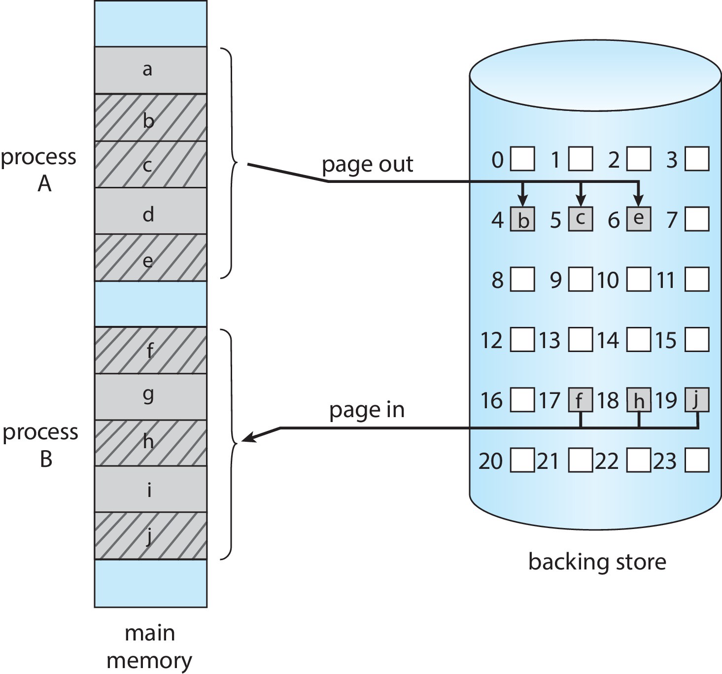 프로그램이 실행되면 Bakcing store에 있는 필요한 page 정보를 메모리에 올린다.